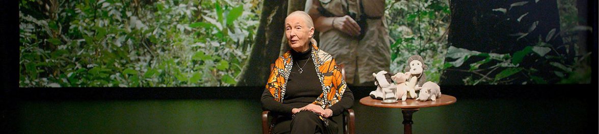 Janes Goodall es Doctora en Etología por la Universidad de Cambridge. Fue distinguida con más de 100 premios internacionales, y ha sido considerada una de las mujeres científicas de mayor impacto en el siglo XX. Los resultados de sus exhaustivas investigaciones acerca del hasta entonces desconocido mundo de los chimpancés revolucionaron a la comunidad científica. Su extenso trabajo, proseguido por la Instituto Jane Goodall, constituye una de las investigaciones de campo más prolongadas sobre animales en libertad.